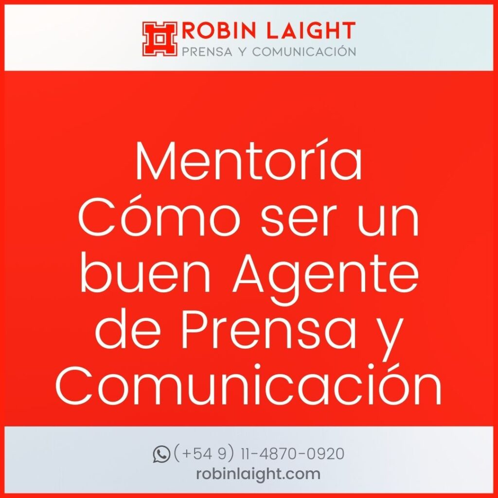 Mentoría Cómo ser un buen Agente de Prensa y Comunicación Dictada por el Lic. Robin Laight. Las mentorías consisten en 1 sesión individual o las que necesites, en las que te ayudo a resolver tareas o problemas específicas. Para obtener mayor información comunicarse por whatsapp al + (54-9) 11-4870-0920